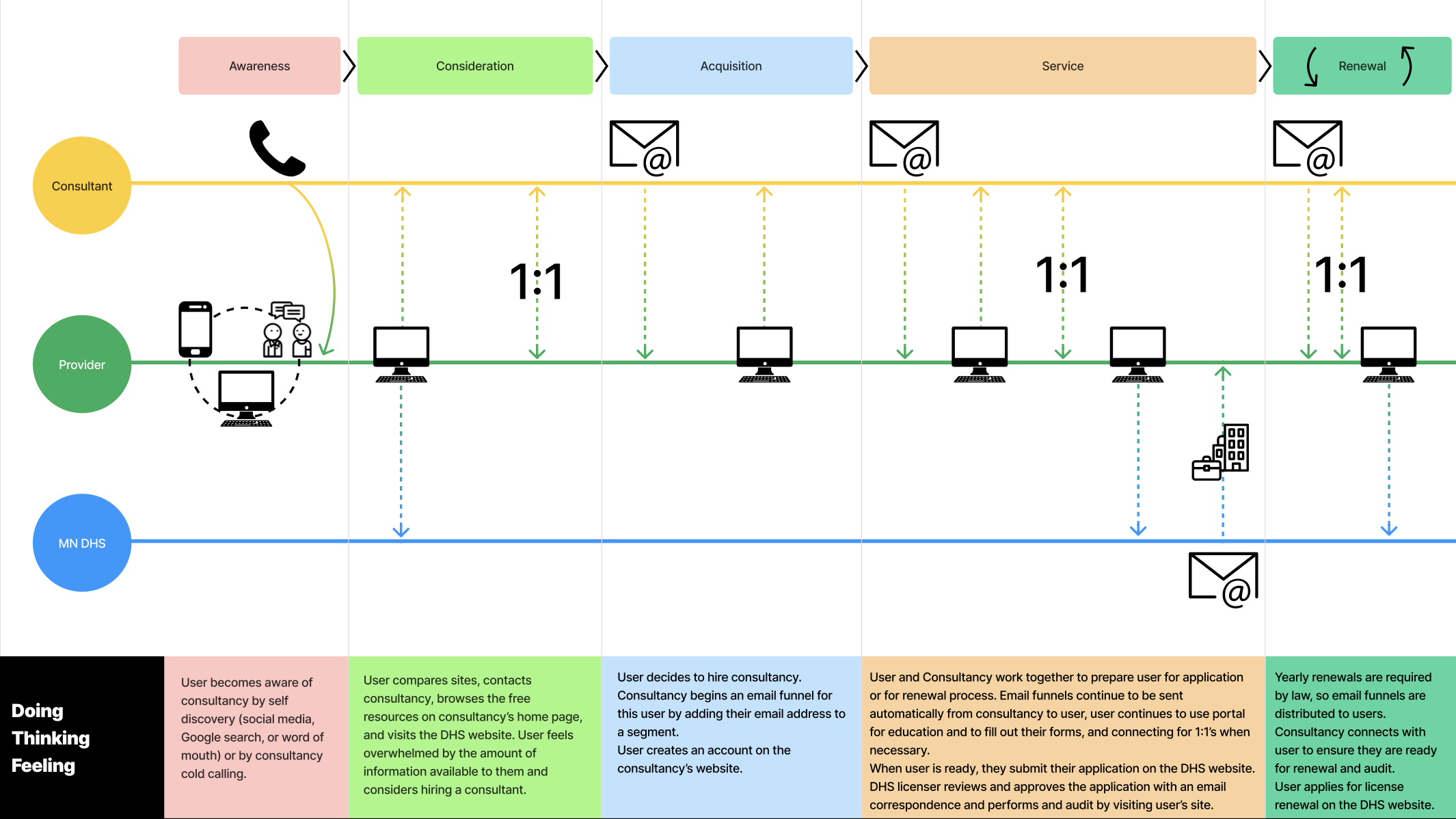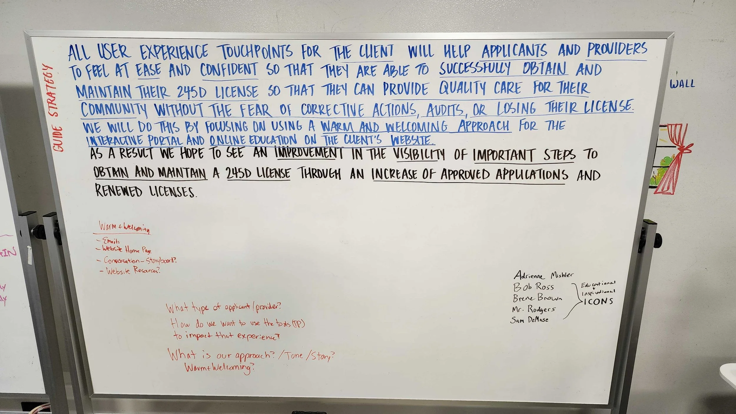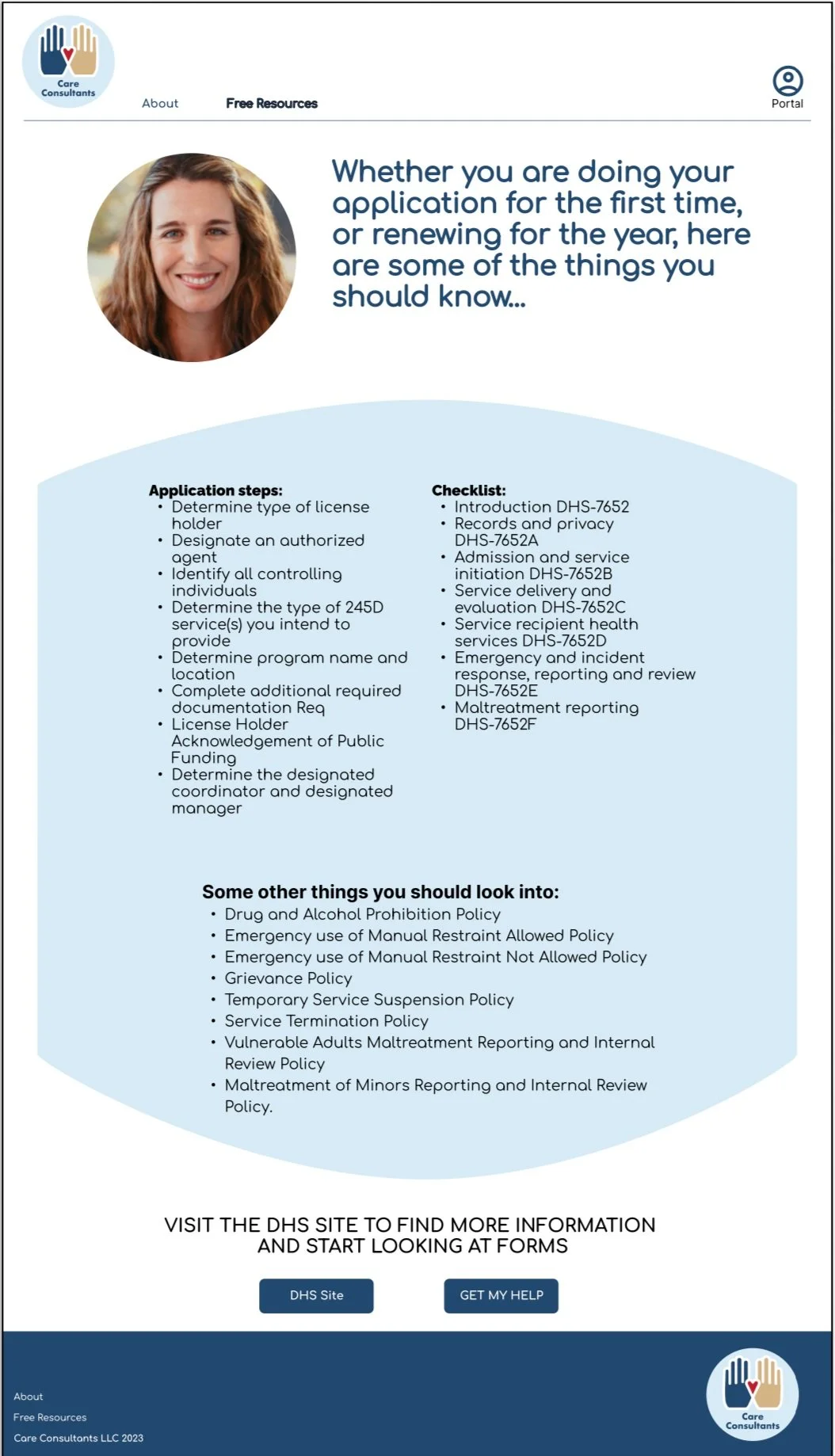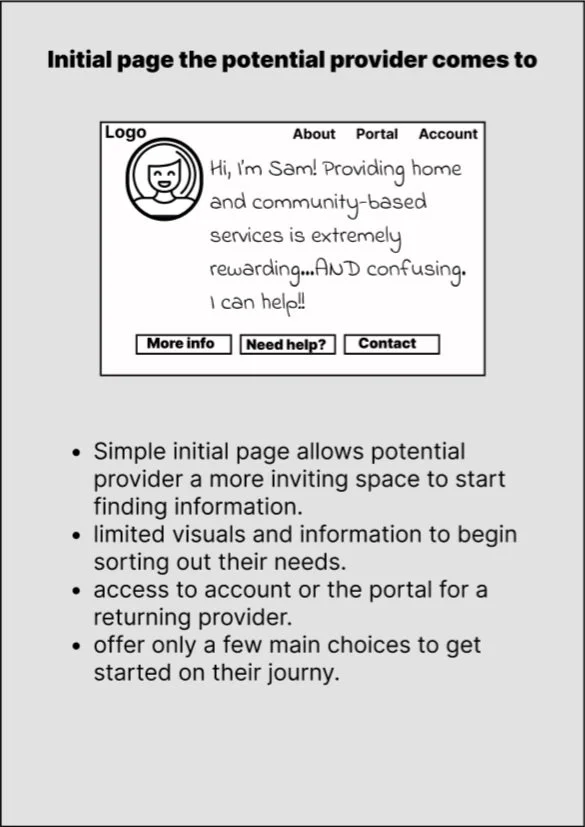 My team and I were utilized to help create a design strategy for a consultant - specifically for the 245D license - to help community and home-based health providers. Our client wanted ways to reach out to potential clients as well as provide help with the confusing process of applying and maintaining compliance.