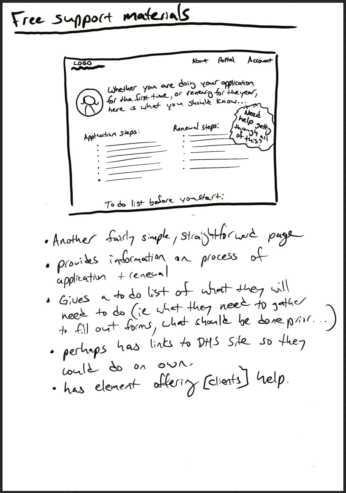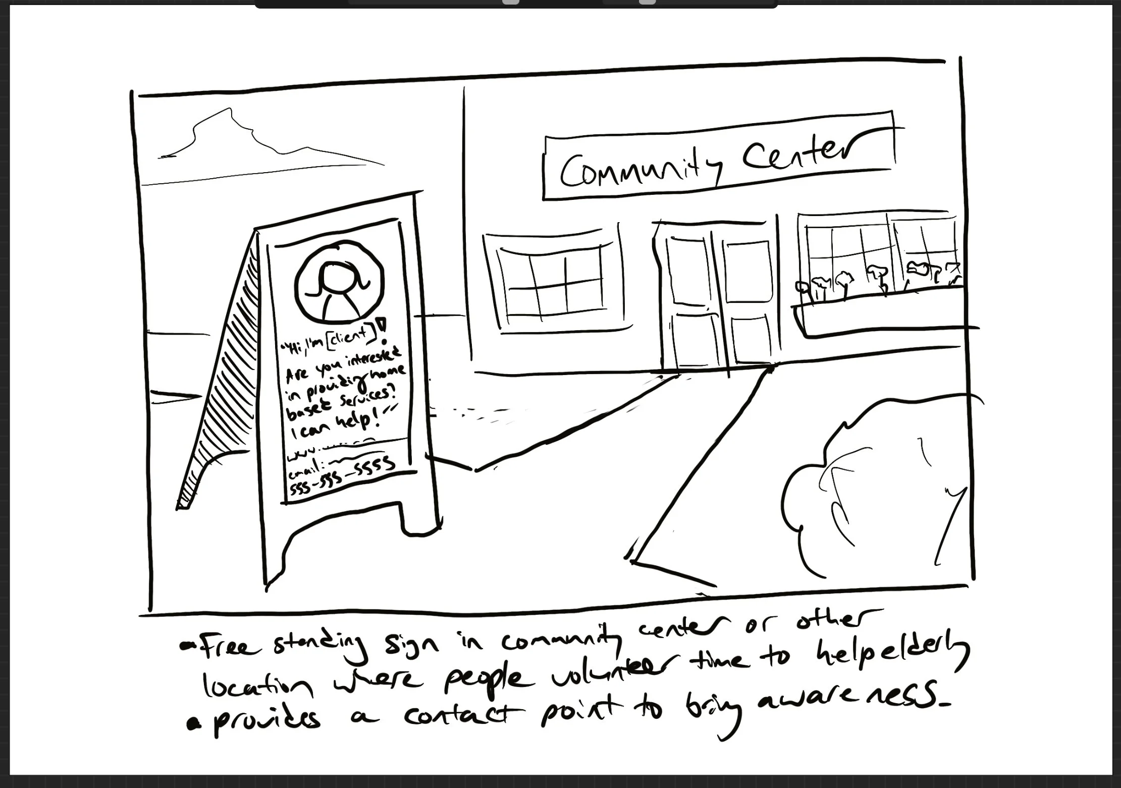 I was personally responsible to create the prototypes that concentrated on the non-tech savvy providers. To do this I focused on two areas. First, a storyboard where a user came across marketing for our client on a more tangible level - through signage and pamphlets. Second, I looked towards their first contact with the website and wanted to keep things simple and straightforward, while starting to introduce them to more of the needed information.