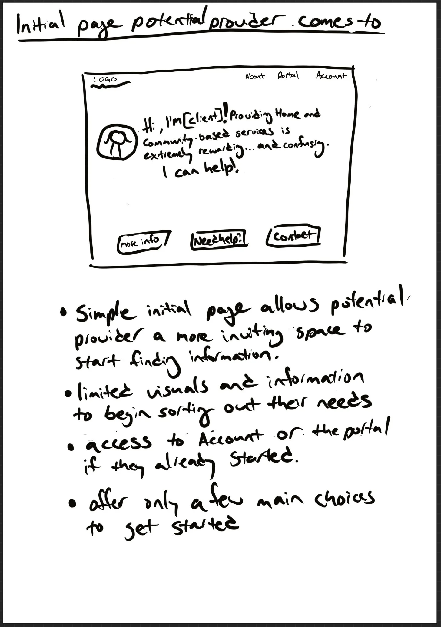 Progression of the landing page design concept. I wanted to keep this a simple and straightforward start to filtering out what a new provider may need.