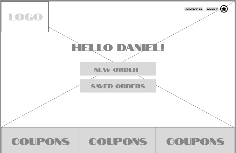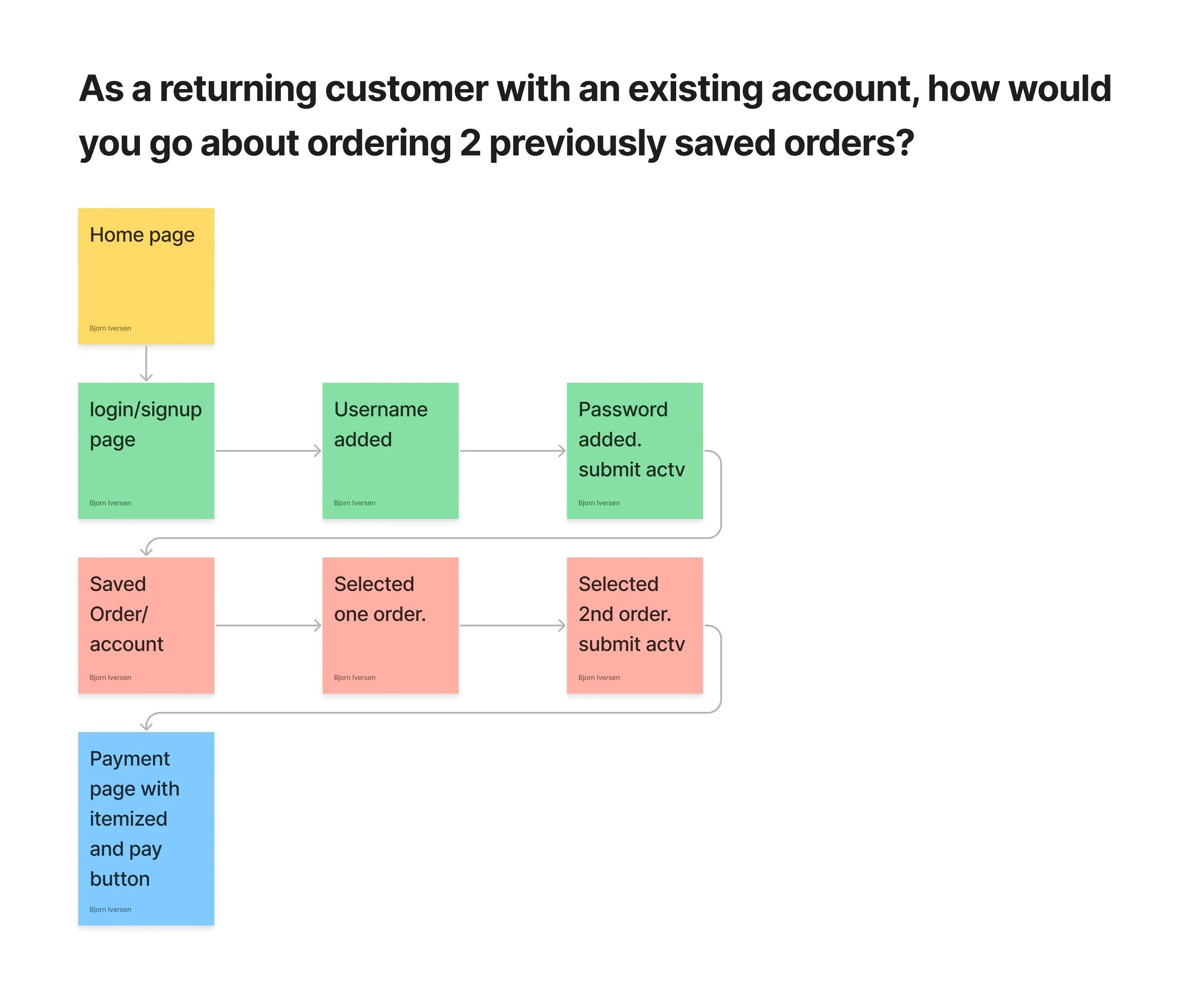 The task-flow for a simple and quick order that I wanted to test started on the simplified home page, continued through the personalized login page, and finished just past the quickly acquired saved order page.