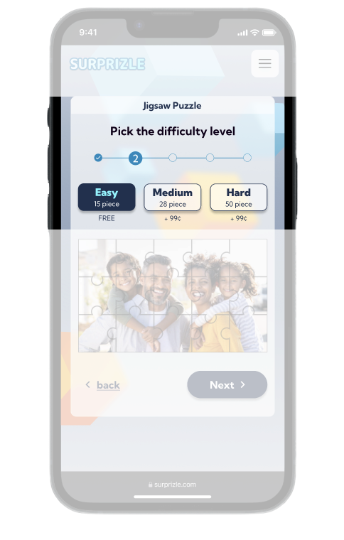Currently, Surprizle™ exists as a live proof of concept (POC) website offering one type of puzzle game that gamifies digital gift-giving.