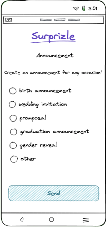 As a design team, we brainstormed new feature concepts cards for Surprizle, with the goal of enhancing its functionality and increasing user engagement. By staying ahead of potential competitors, we aimed for innovative concepts that would set Surprizle apart.